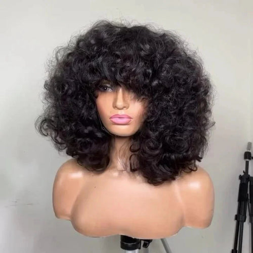 • Full Lace Pixie Cut Wig With Short Tail 180% Density Natural Black Human Hair